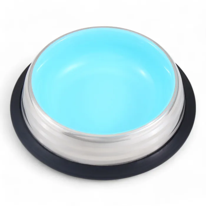 Эта серебристо-голубая миска объемом 225 мл с нескользящим основанием станет прекрасным выбором для вашего питомца. Она изготовлена из качественного металла с прорезиненным основанием, что обеспечивает её стабильность на любой поверхности и предотвращает скольжение даже при активном использовании. Ваша собака сможет наслаждаться едой без неудобств.