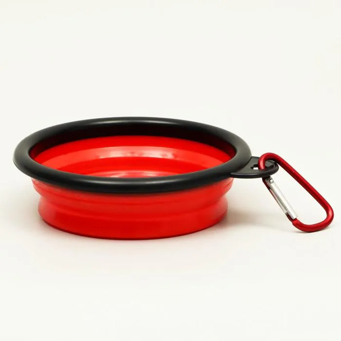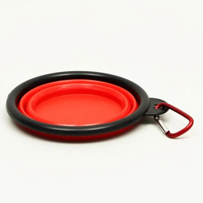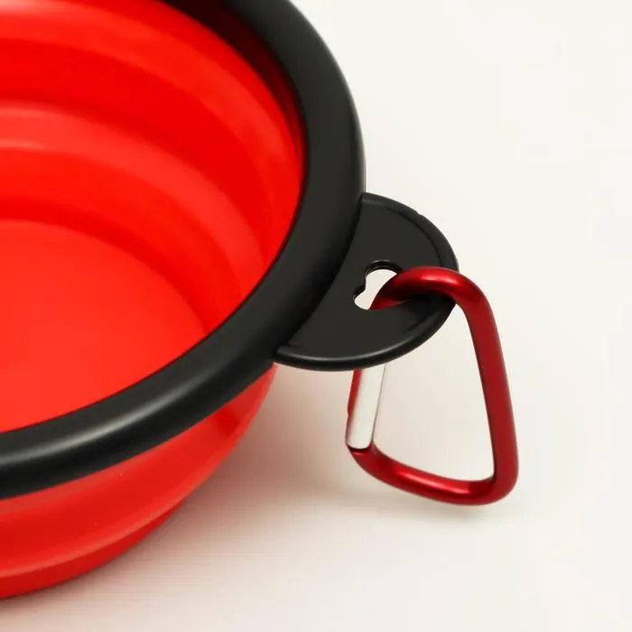 Миска имеет складную конструкцию, которая позволяет легко свернуть ее в компактный размер, удобно помещается в сумку или карман, также есть карабин, который позволяет легко прикрепить ее к рюкзаку, поясу или ошейнику вашего питомца.