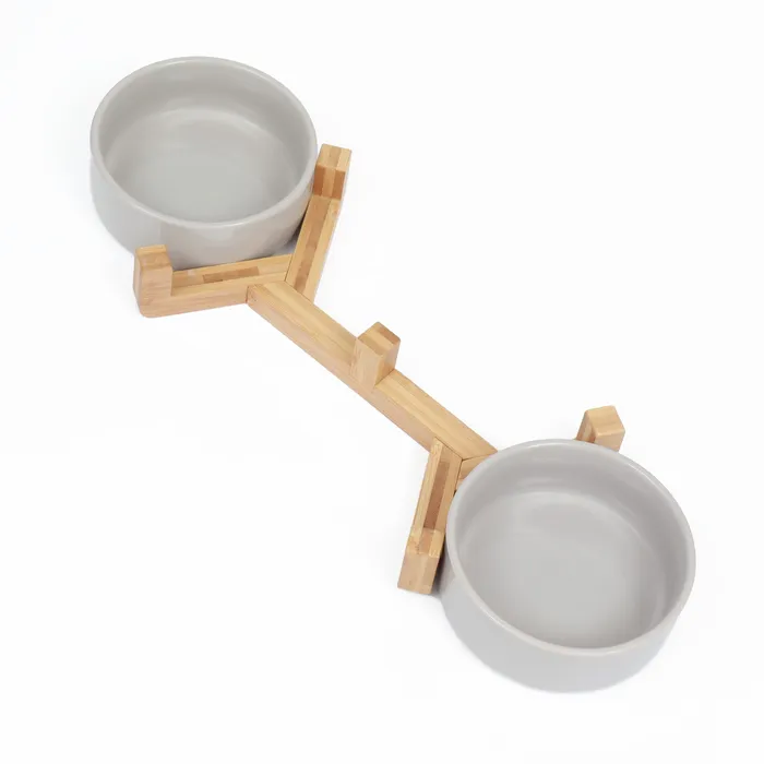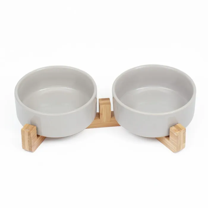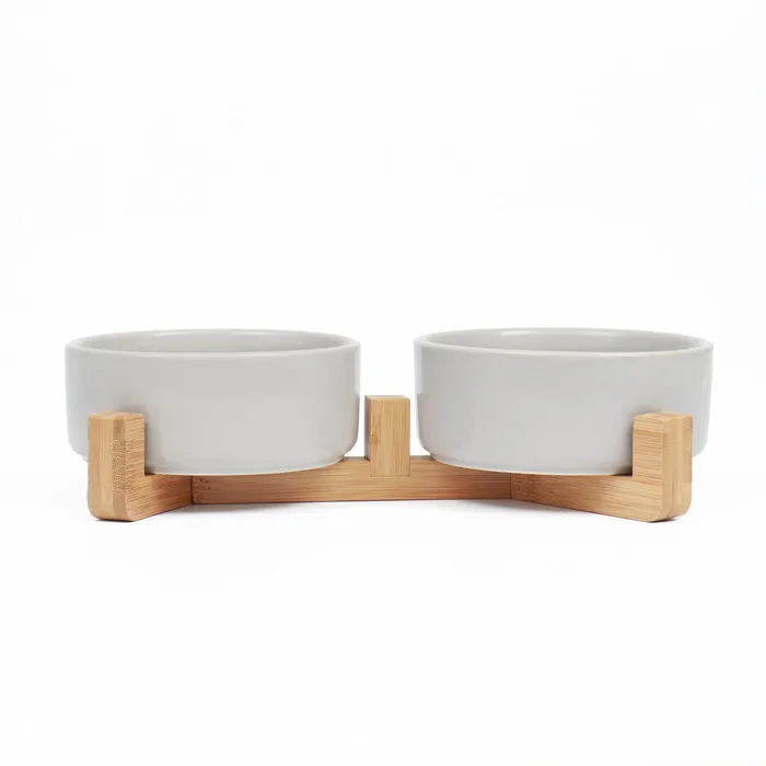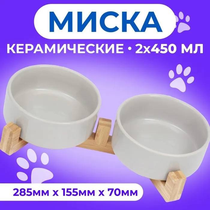 Эти двойные керамические миски на подставке станут не только функциональным, но и эстетичным дополнением к вашему дому, обеспечивая вашему любимцу максимальный комфорт во время каждого приема пищи.