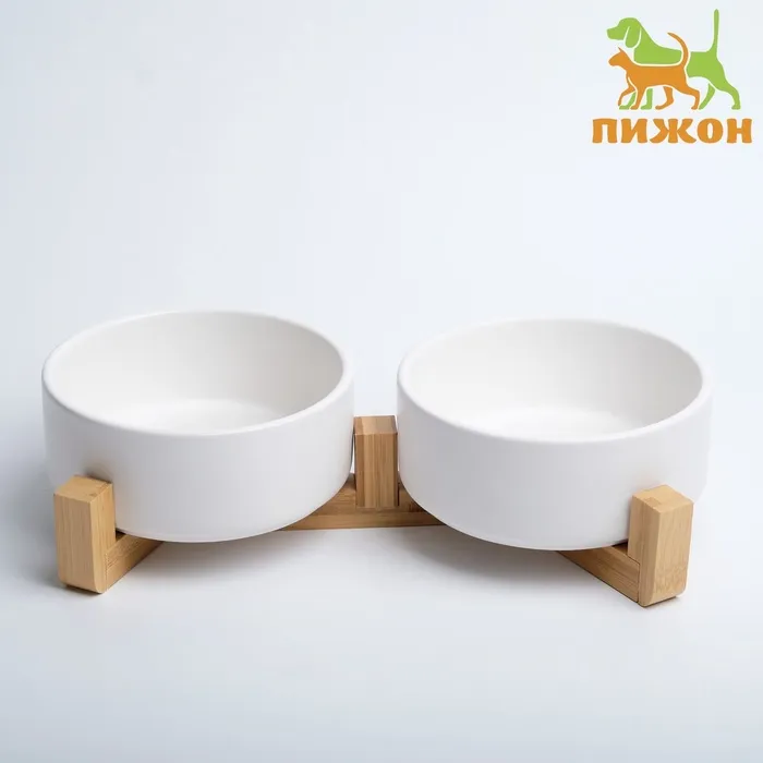 Миски керамические двойные на подставке 2 х 450 мл 28,5 х 15,5 х 7 см, белая — Характеристики