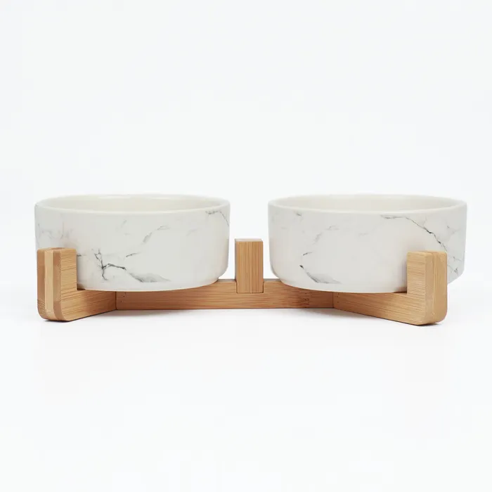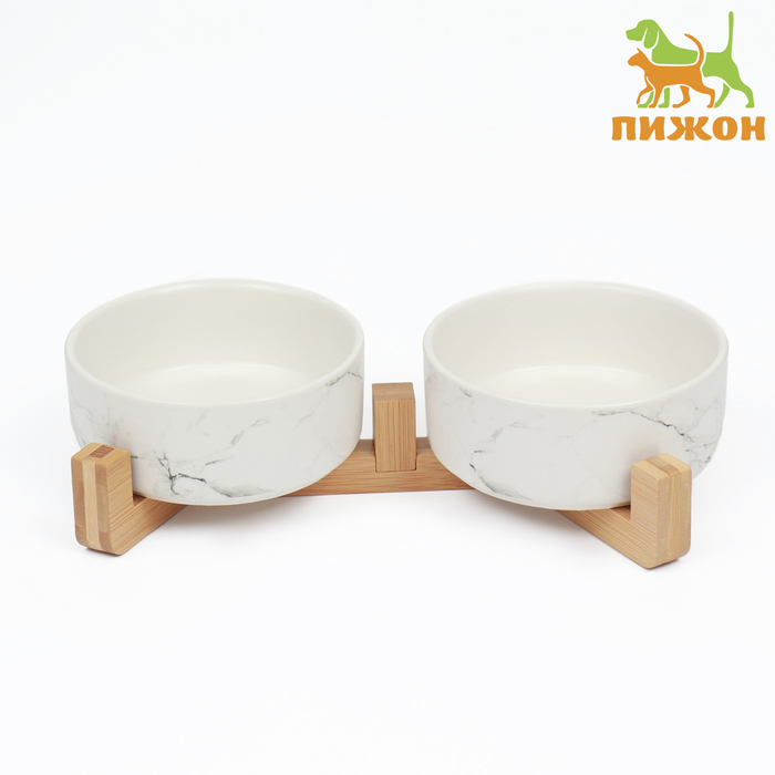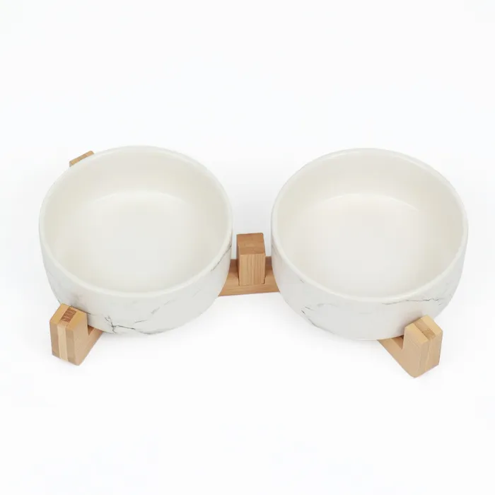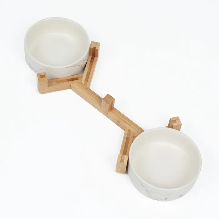 Керамическая поверхность обеспечивает долговечность и простоту ухода, а устойчивость подставки предотвращает переворачивание и разлив пищи или воды. Благодаря двойной конструкции, одна миска может использоваться для воды, а другая для корма, что добавляет удобства для вас и вашего питомца.