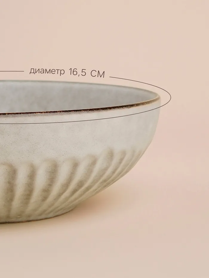 Миски выполнены из высококачественного фарфора, что гарантирует их долговечность и устойчивость к повседневному использованию. Приятный бежевый цвет с текстурными полосками добавляет теплоты и гармонии в сервировку вашего стола, идеально сочетаясь с другими элементами декора.
