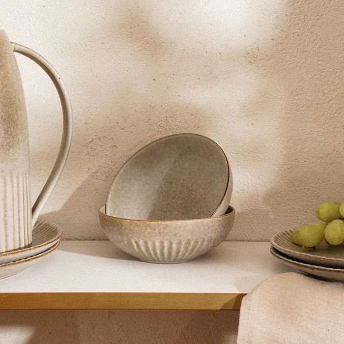 - Эстетика и функциональность: Рельефная текстура и рисунок в виде полосок придают мискам особый шарм, делая их центральным элементом на любом столе.