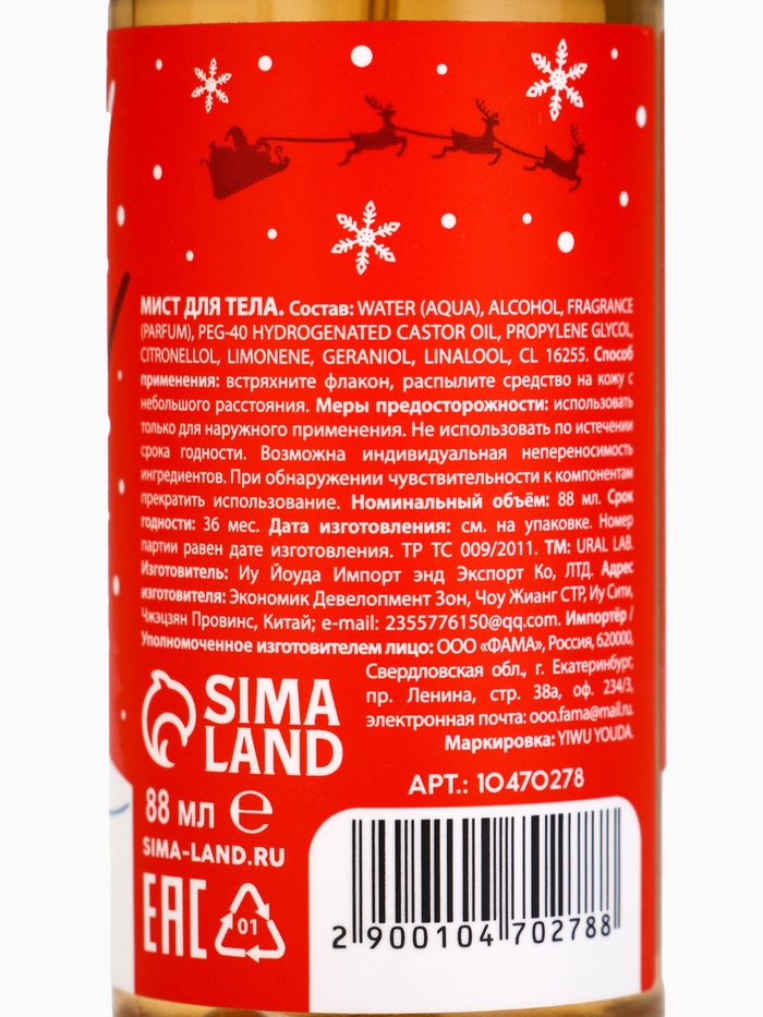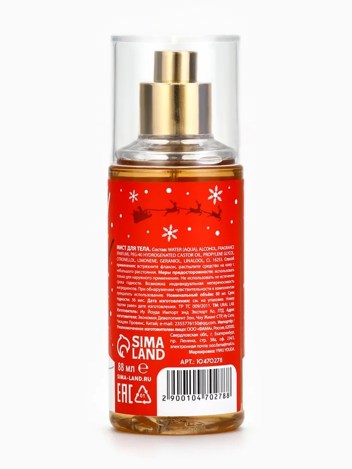 Мист для тела «Мишка», 88 мл, аромат снежного маршмеллоу, URAL LAB — Характеристики