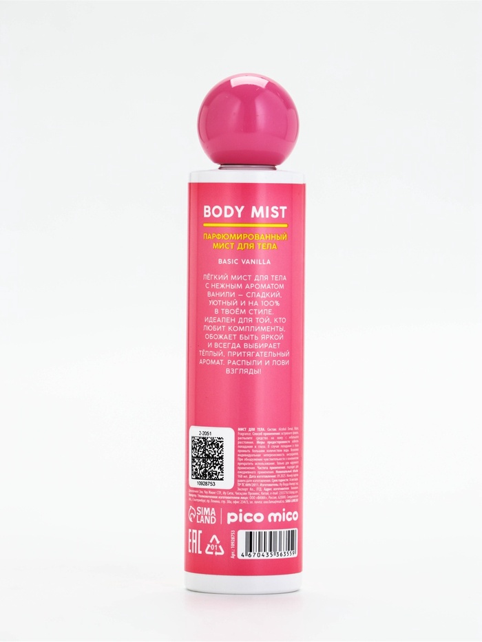 Мист для тела парфюмированный, 168 мл, аромат ваниль, PICO MICO — Характеристики