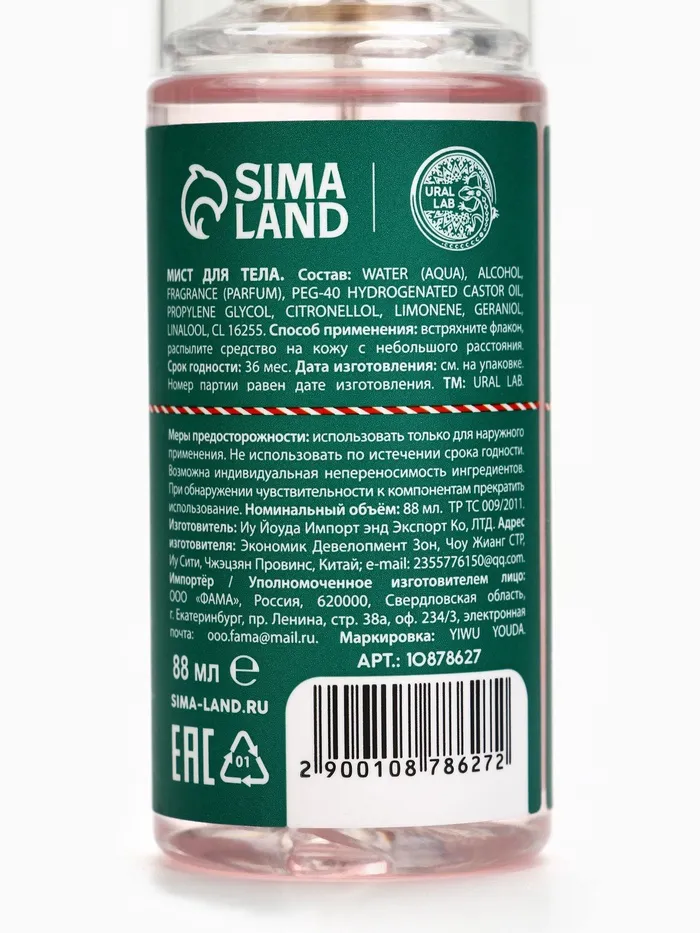 Мист для тела парфюмированный, с ароматом новогоднего леденца, 88 мл, URAL LAB — Характеристики