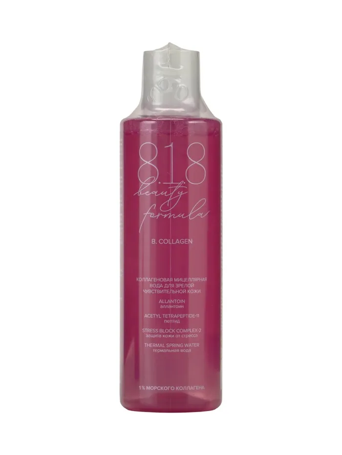Мицеллярная вода 818 beauty formula с коллагеном создана специально для зрелой и чувствительной кожи, требующей деликатного, но эффективного ухода. Средство мягко удаляет макияж и загрязнения, одновременно поддерживая упругость и эластичность кожи.