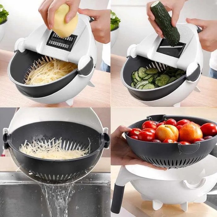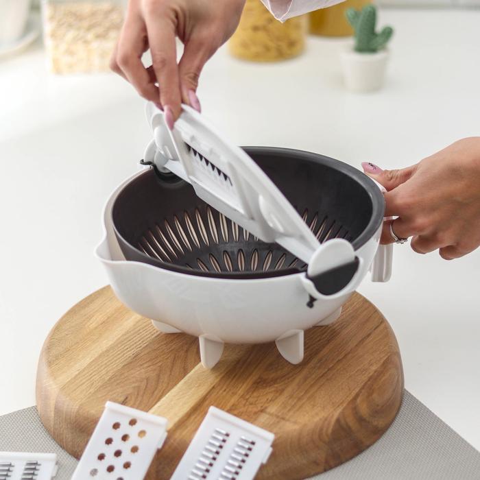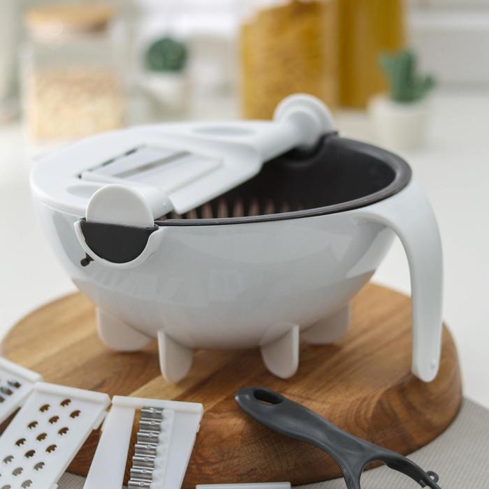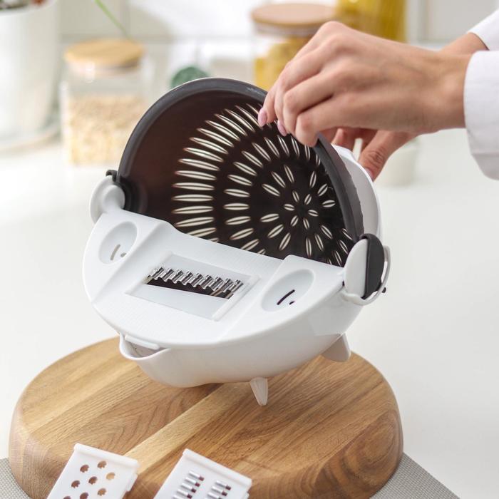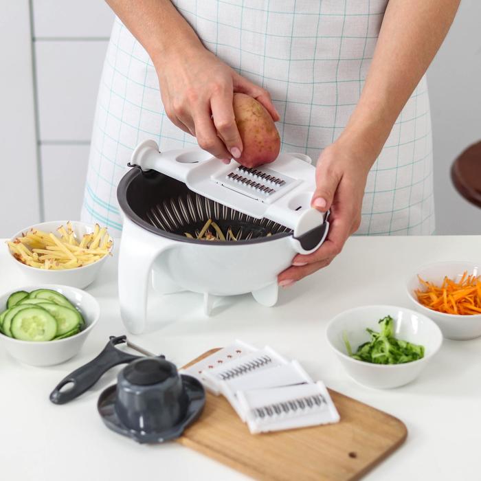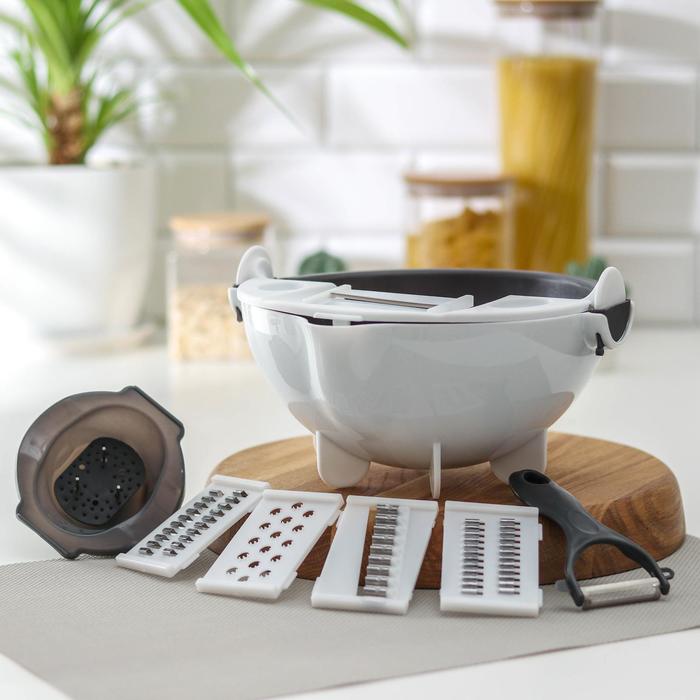 Многофункциональная овощерезка «Маджестик», со сливной корзиной, 22,3×13,5×22,5 см, цвет бело-серый — Характеристики