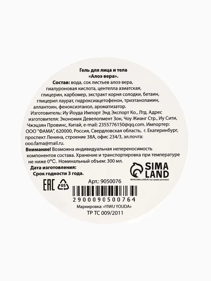 Многофункциональный гель для лица и тела «Алоэ вера», 300 мл — Характеристики