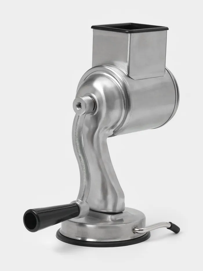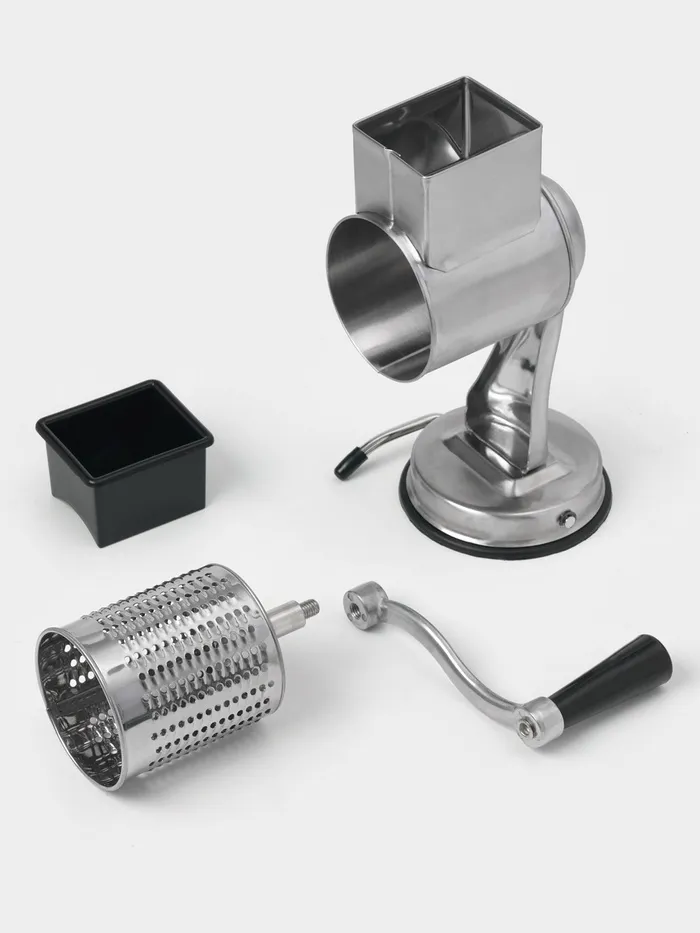 Многофункциональный ручной комбайн быстро нарежет продукты для самых разнообразных блюд. Прибор работает по принципу мясорубки — острые лезвия измельчают продукты, когда вы прокручиваете ручку.