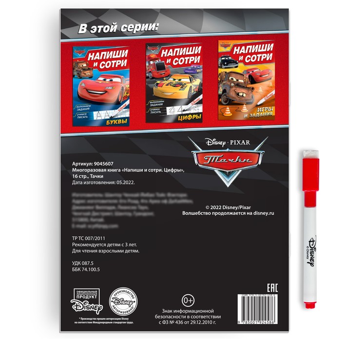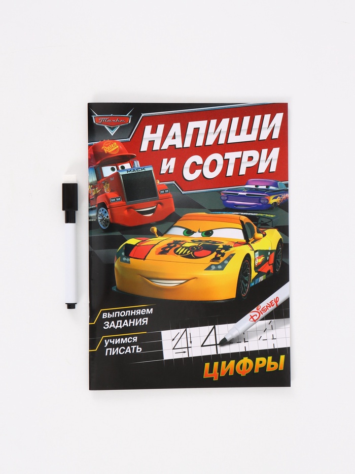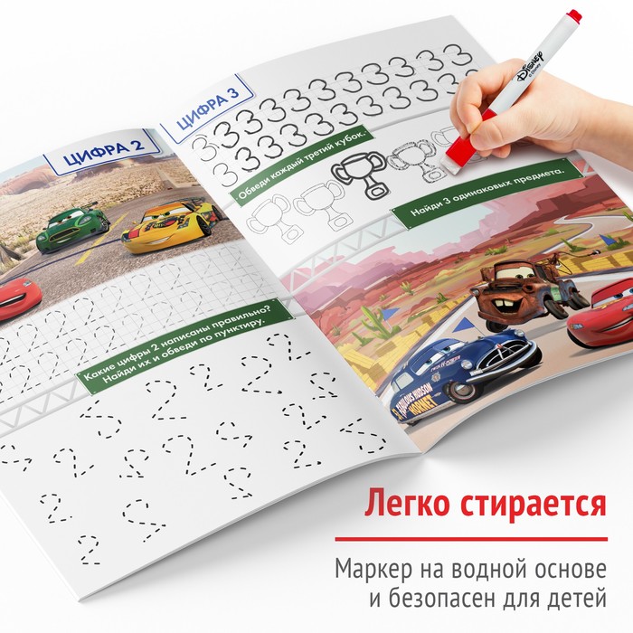 Многоразовая книга «Напиши и сотри. Цифры», 16 стр., 17×24 см, + маркер, Тачки — Характеристики