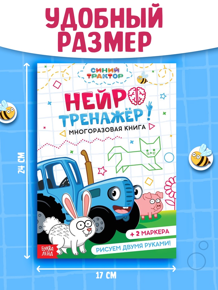 Многоразовая книга «Нейротренажёр», 17×24 см, 24 стр., 2 маркера, Синий трактор — Характеристики