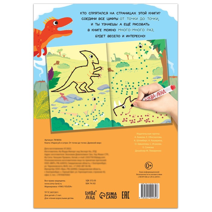 Многоразовая книга «Рисуем по точкам. Динозавры», с маркером, 16 стр. — Характеристики