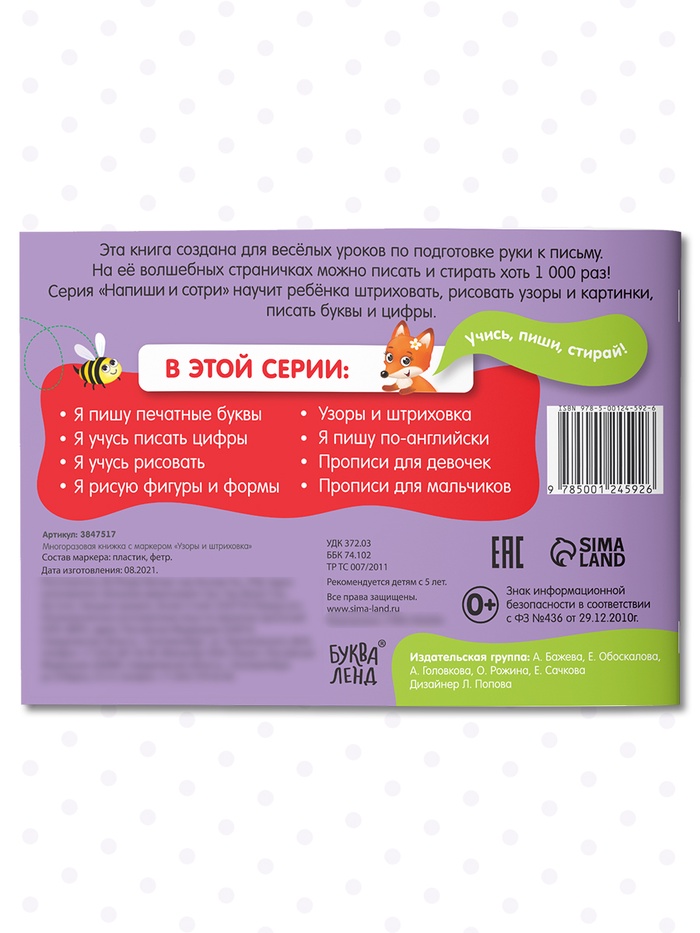 - Многоразовое использование страниц позволяет ребёнку исправлять ошибки, что развивает терпение и внимательность.