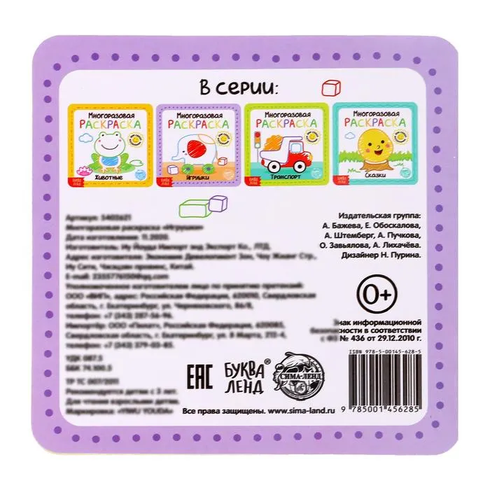 Многоразовая раскраска «Игрушки» с набором маркеров станет увлекательным занятием для детей от 3 лет. Эти 12 страниц с яркими изображениями подарят ребёнку возможность творить снова и снова, тренируя моторику и раскрывая фантазию.