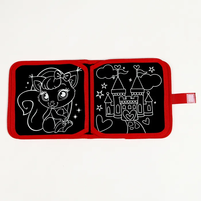 - В отличие от бумажных альбомов, книгу можно использовать многократно. Чтобы стереть следы мелков с поверхности, можно использовать обычные влажные салфетки.