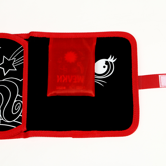 - Внутри книги есть карман для хранения мелков, который можно отогнуть и спрятать внутри сложенной папки.
