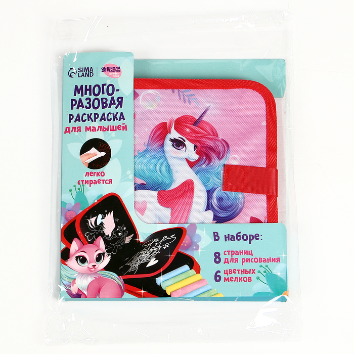 Многоразовая раскраска книга для девочек «Сказочный единорог», 8 страниц — Характеристики