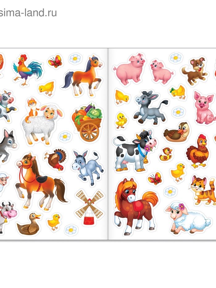 В каждой книге есть 45 многоразовых наклеек (можно наклеить по 3–4 раза).
