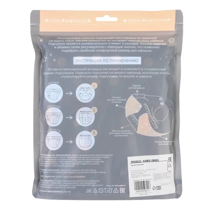 • Размер подгузника универсальный, подходит для детей от 3 до 15 кг, от рождения до 3 лет;