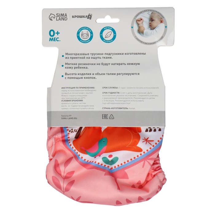 Многоразовый подгузник «Белочка», 3-15 кг, Крошка Я — Характеристики
