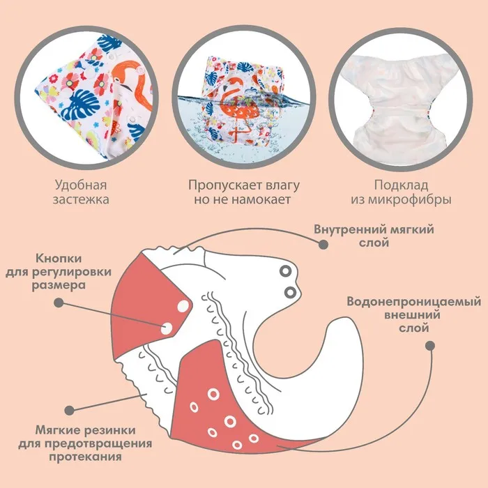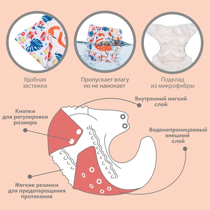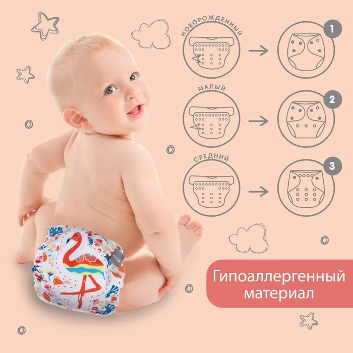 Многоразовый подгузник «Фламинго», 3-15 кг, Крошка Я — Характеристики