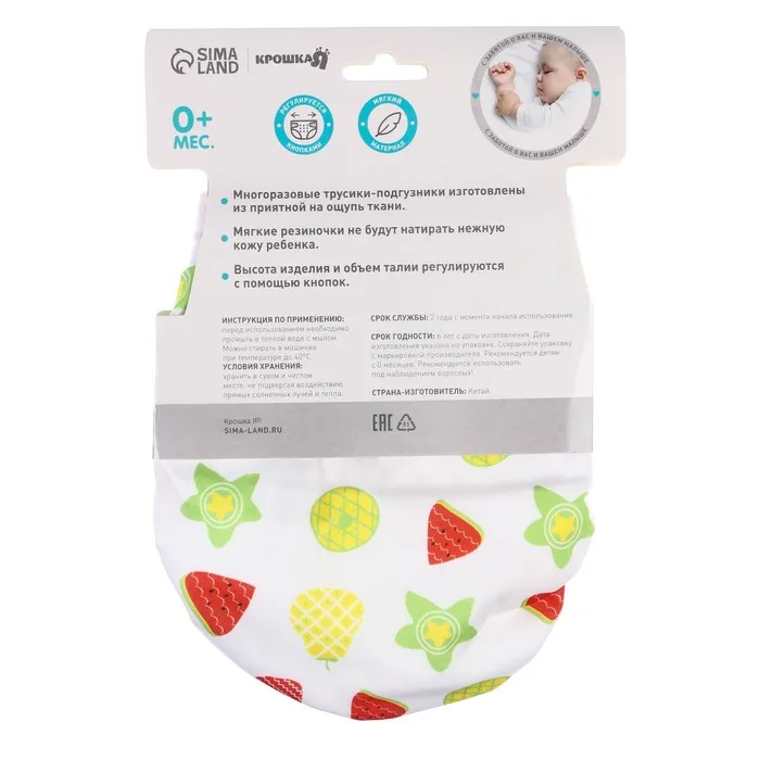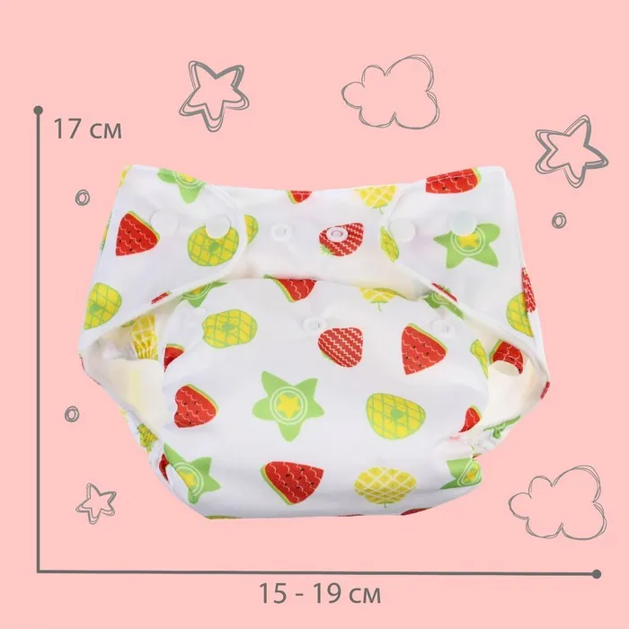 Многоразовый подгузник «Фрукты», 3-15 кг, белый, Крошка Я — Характеристики