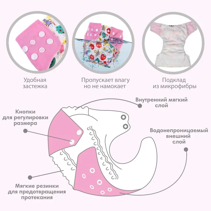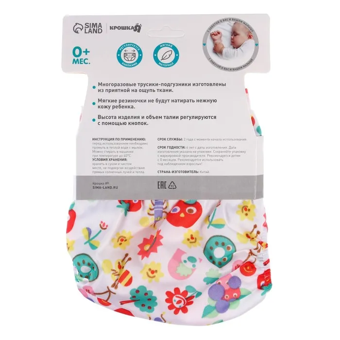 Многоразовый подгузник «Ягодка», 3-15 кг, Крошка Я — Характеристики