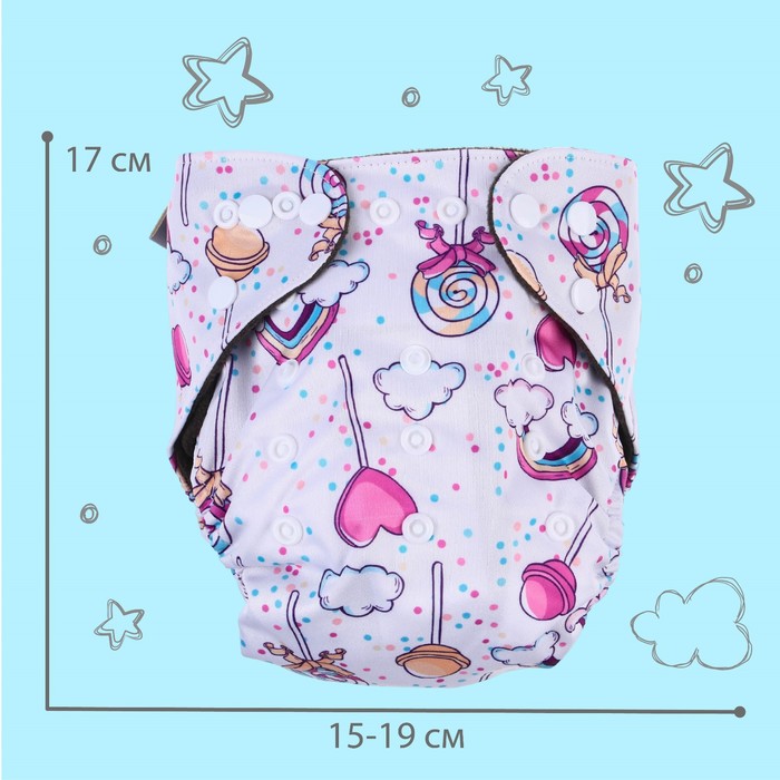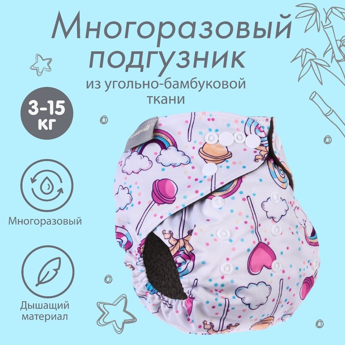 Многоразовый подгузник «Карамельки», 3-15 кг, угольно-бамбуковая ткань, Крошка Я — Характеристики