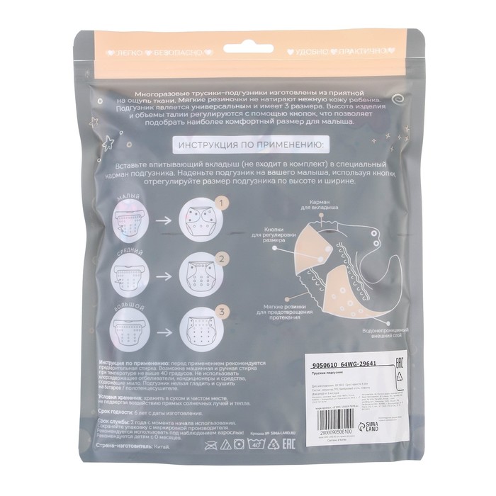 • Размер подгузника универсальный, подходит для детей от 3 до 15 кг, от рождения до 3 лет;