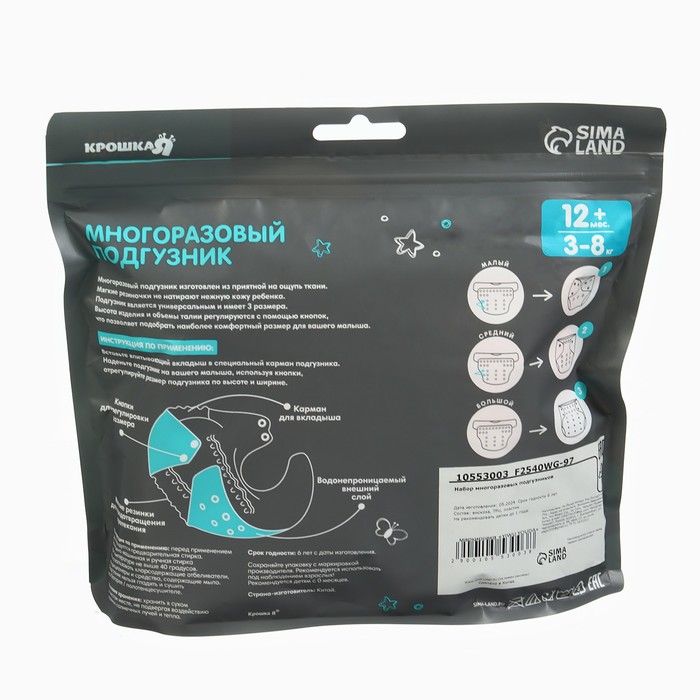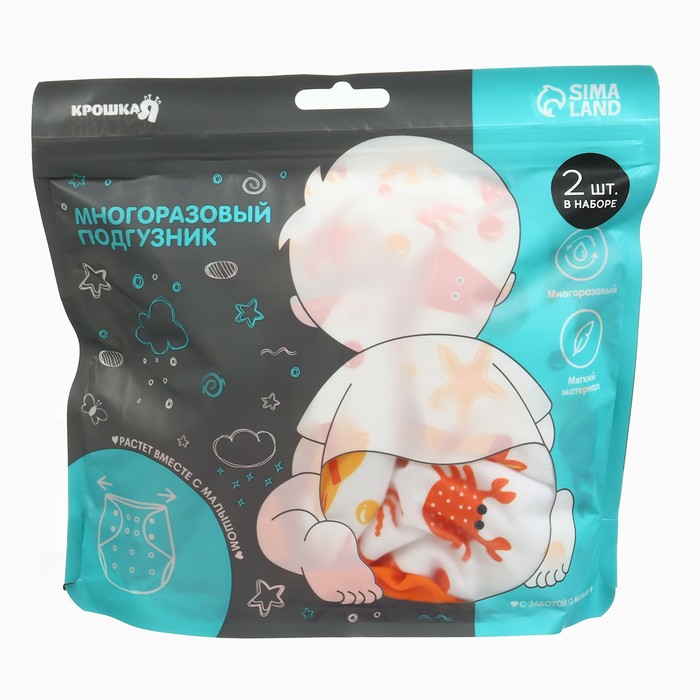 Многоразовый подгузник «Крабик», 3-8 кг, белый, оранжевый, 2 шт. — Характеристики