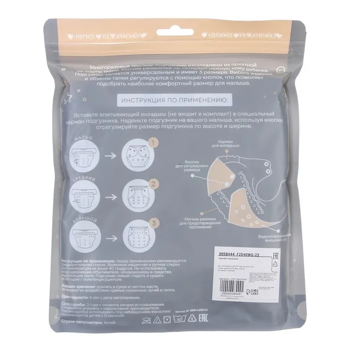 Многоразовый подгузник Крошка Я, 3-15 кг, флис, светло-серый — Характеристики