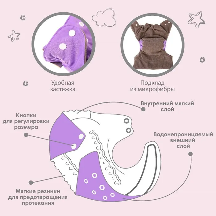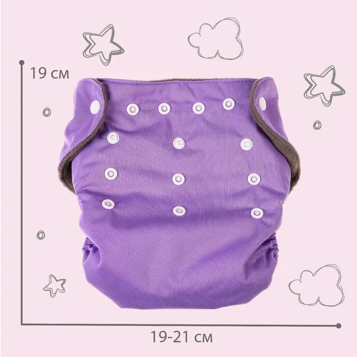 Многоразовый подгузник Крошка Я, 3-15 кг, угольно-бамбуковая ткань, фиолетовый — Характеристики