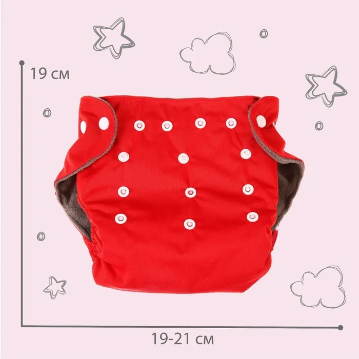 Многоразовый подгузник Крошка Я, 3-15 кг, угольно-бамбуковая ткань, красный — Характеристики