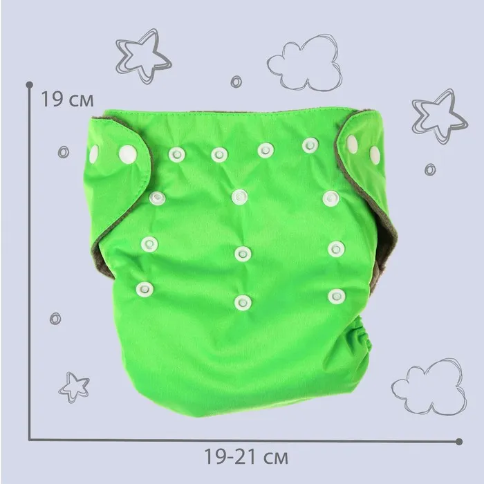 Многоразовый подгузник Крошка Я, 3-15 кг, угольно-бамбуковая ткань, зеленый — Характеристики