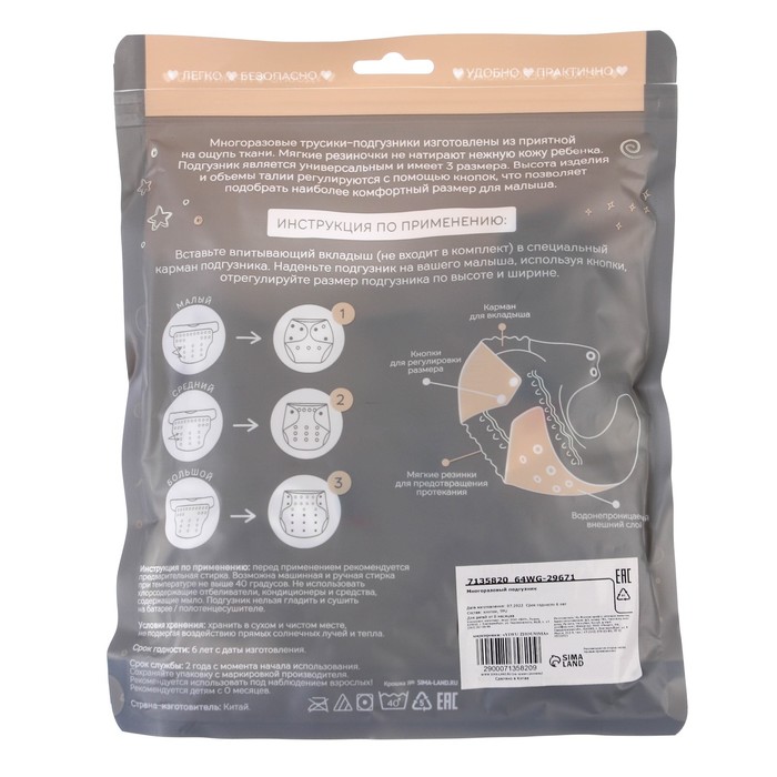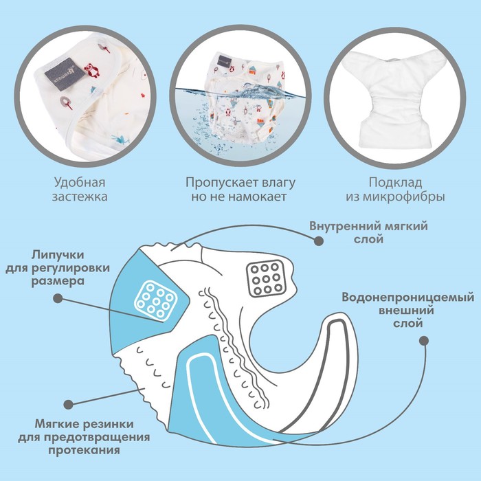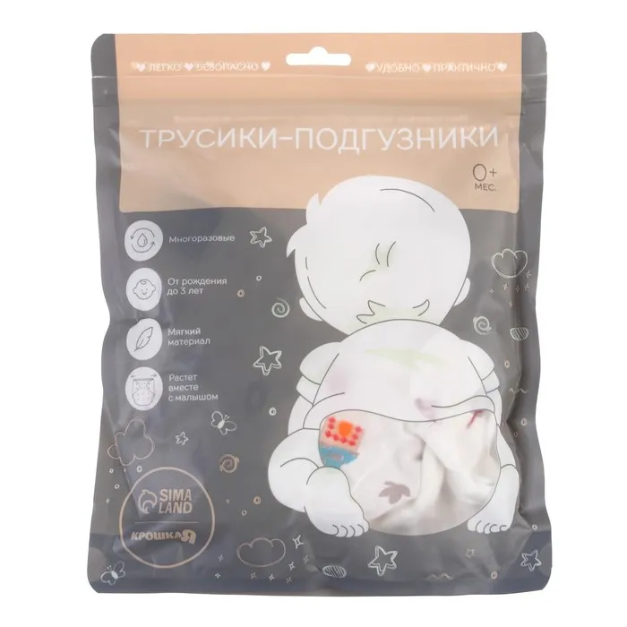 Многоразовый подгузник Крошка Я «Домики», 3-15 кг, белый — Характеристики