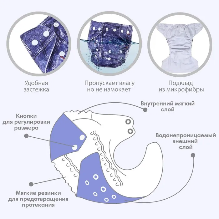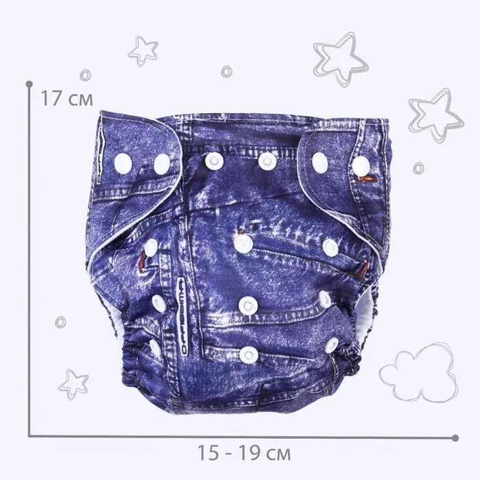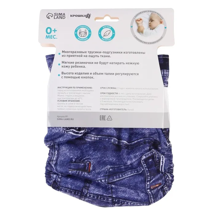Многоразовый подгузник Крошка Я «Джинс», 3-15 кг, синий — Характеристики