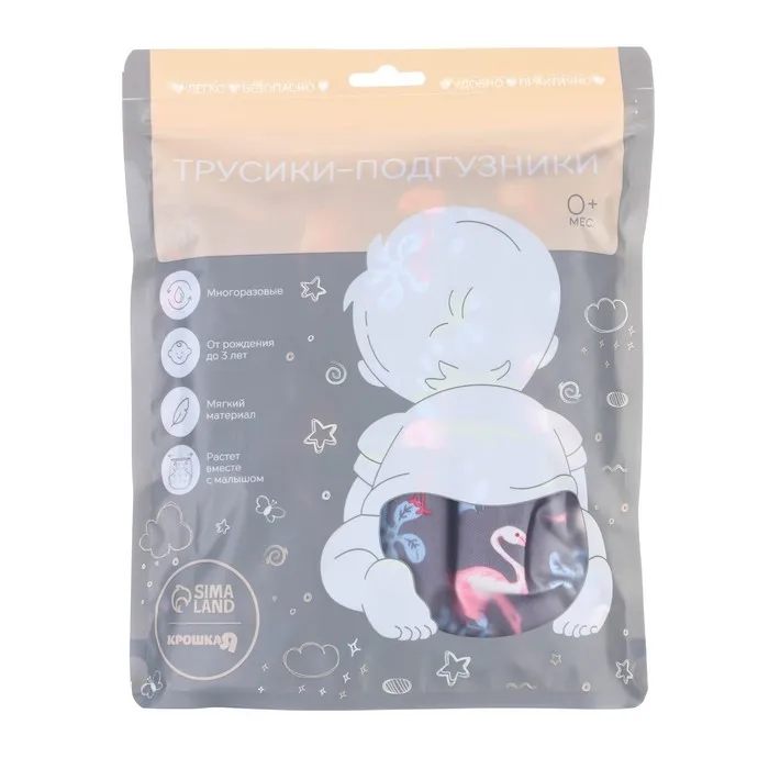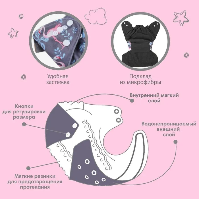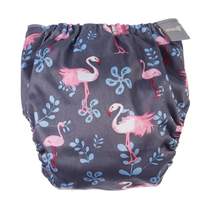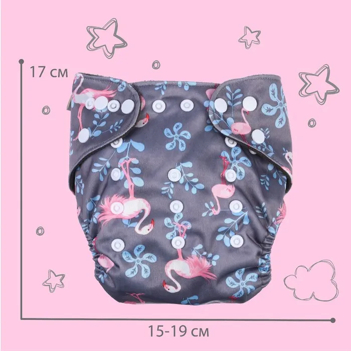 Многоразовый подгузник Крошка Я «Фламинго», 3-15 кг, угольно-бамбуковая ткань, серый — Характеристики