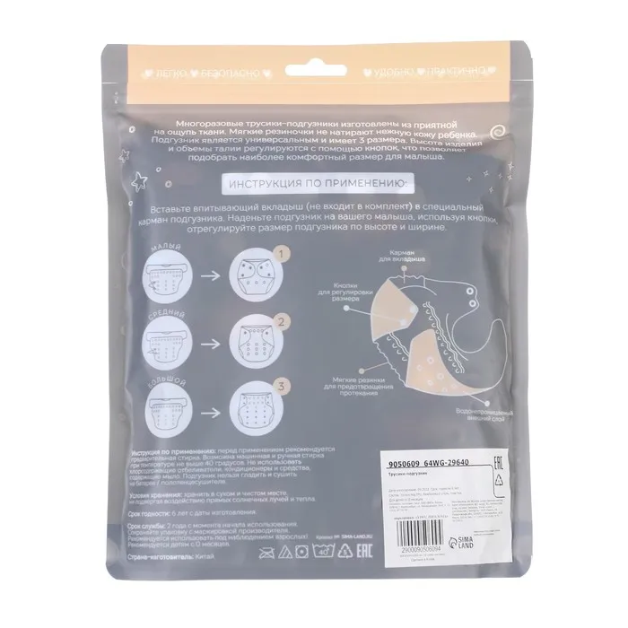 • Размер подгузника универсальный, подходит для детей от 3 до 15 кг, от рождения до 3 лет;