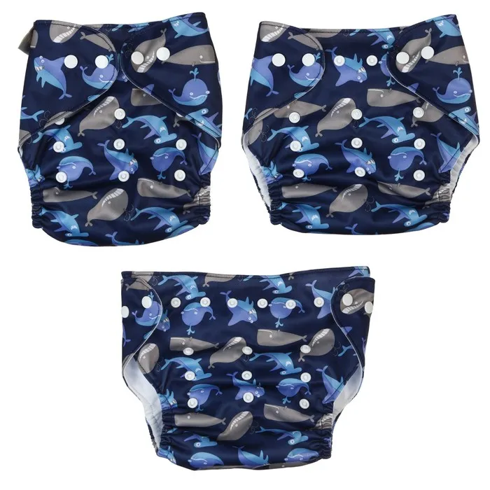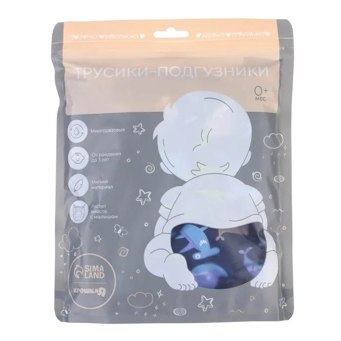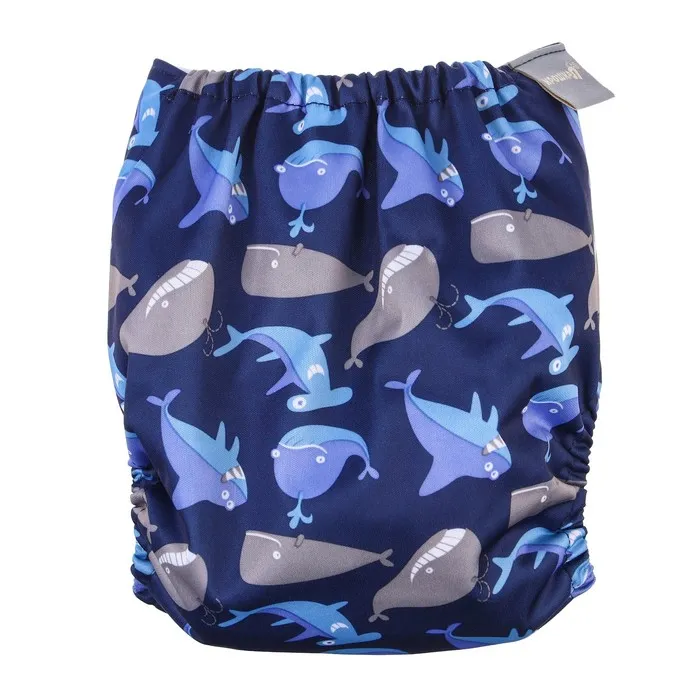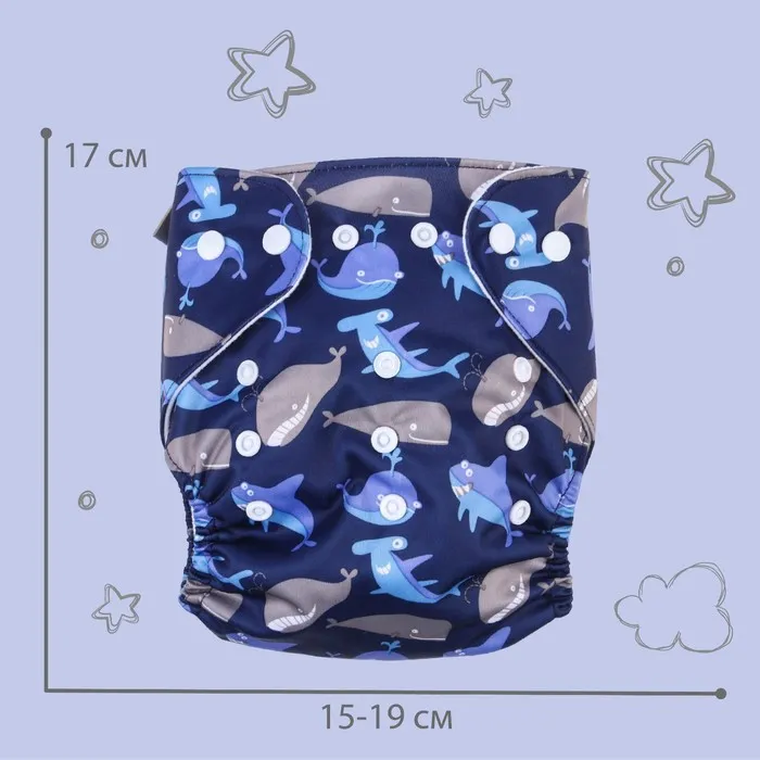 Многоразовый подгузник Крошка Я «Киты», 3-15 кг, синий — Характеристики