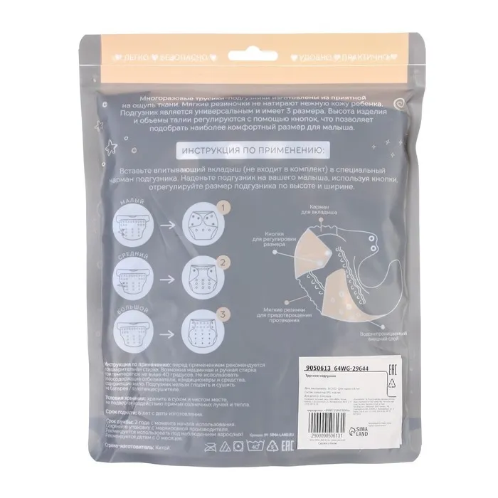 • Подгузник имеет удобный кармашек для вкладыша;