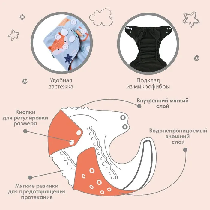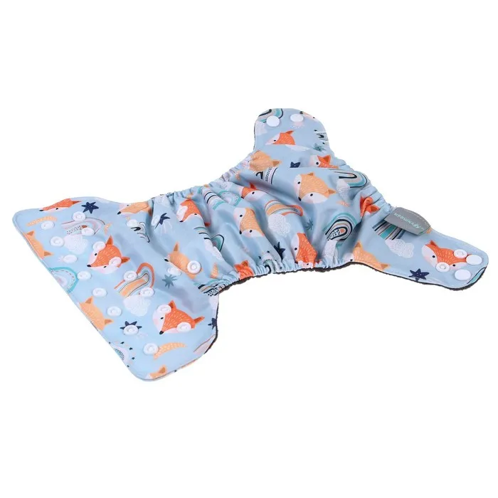 Многоразовый подгузник Крошка Я «Лисички», 3-8 кг, угольно-бамбуковая ткань, голубой — Характеристики