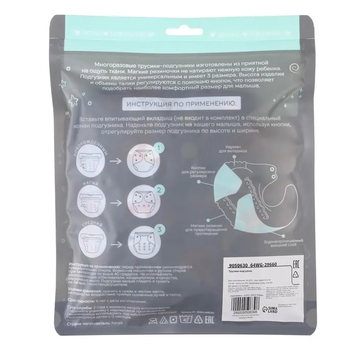 • Размер подгузника универсальный, подходит для детей от 3 до 15 кг, от рождения до 3 лет;