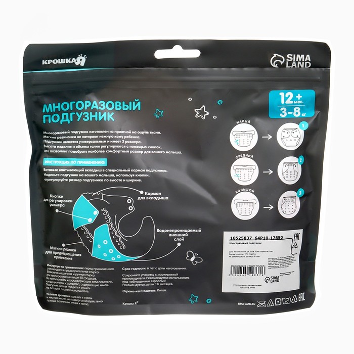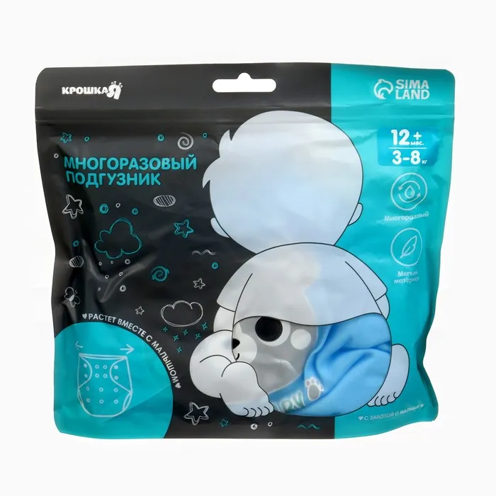 Многоразовый подгузник Крошка Я «Little baby», 3-15 кг, голубой — Характеристики