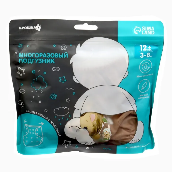 Многоразовый подгузник Крошка Я «Львенок», 3-15 кг, коричневый — Характеристики