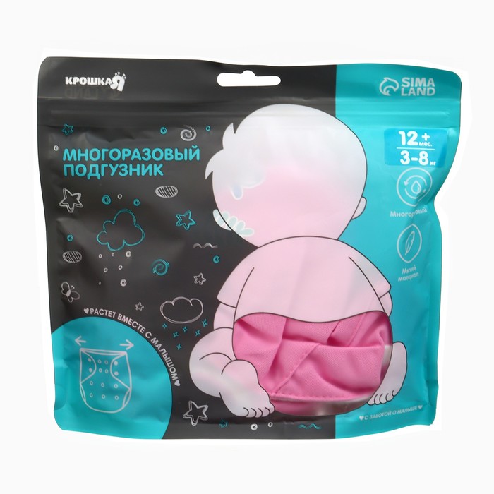 Многоразовый подгузник Крошка Я «Наш цветочек», 3-15 кг, розовый — Характеристики
