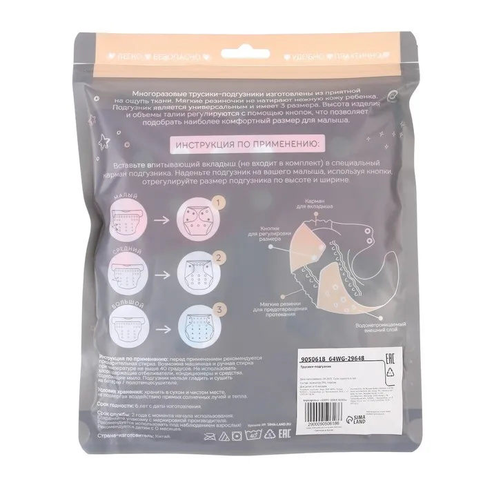 • Размер подгузника универсальный, подходит для детей от 3 до 15 кг, от рождения до 3 лет;