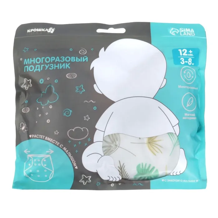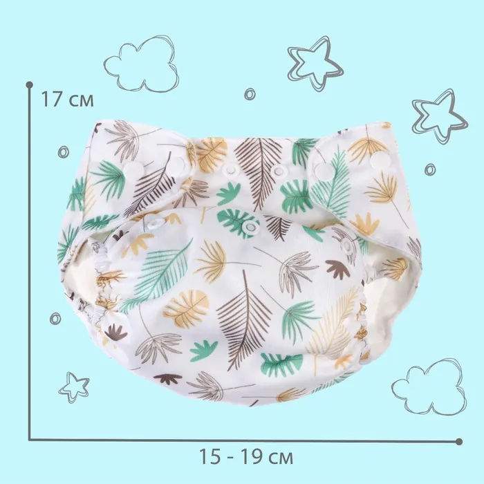 Многоразовый подгузник Крошка Я «Перья», 3-15 кг, белый — Характеристики