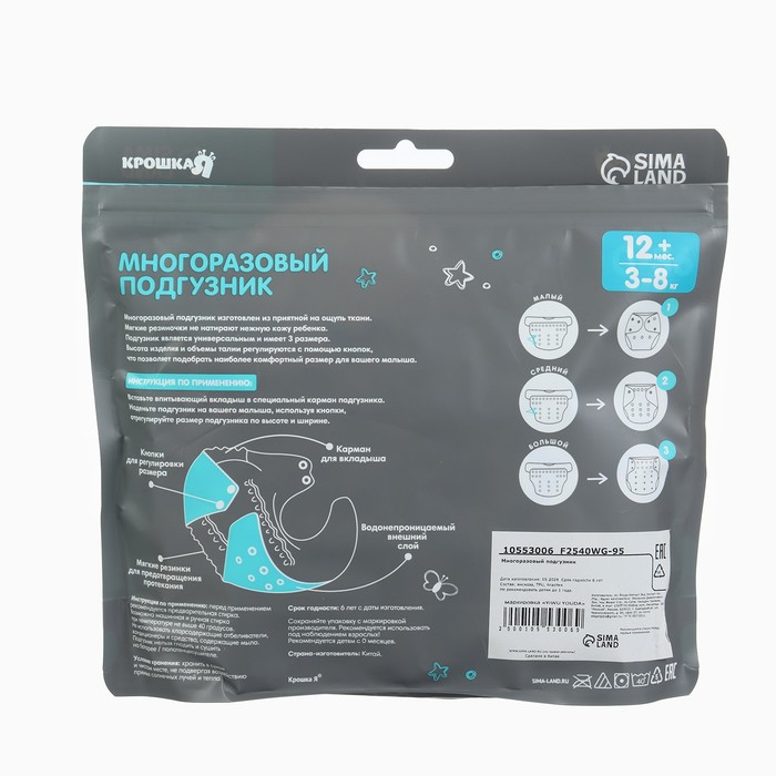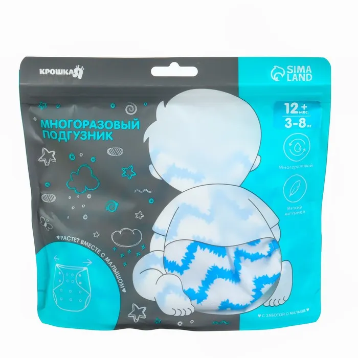 Многоразовый подгузник Крошка Я «Зигзаги», 3-15 кг, голубой — Характеристики