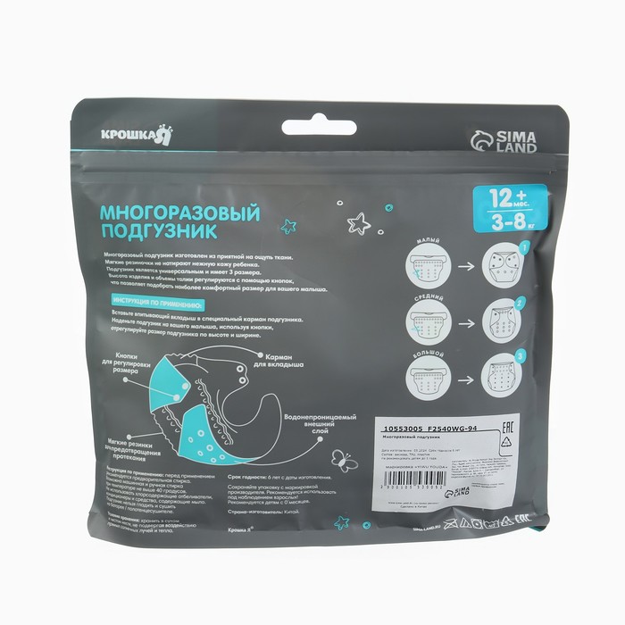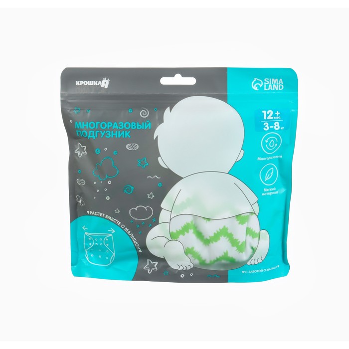 Многоразовый подгузник Крошка Я «Зигзаги», 3-15 кг, зеленый — Характеристики